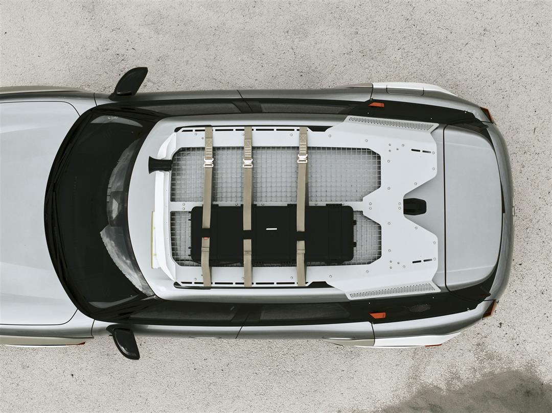 “VAGABUND”标识,则低调却坚定地标识着它的独特身份。20 英寸封闭式 3D 打印轮毂盖,在强化力量感与肌肉感的同时,巧妙呼应了车尾音箱的设计语言。而车顶由激光切割铝板与不锈钢网格共同构成的车顶行李架,在视觉上借鉴了音箱网罩的设计特点,它不再只是功能附件,而是整车设计表达不可或缺的一部分。