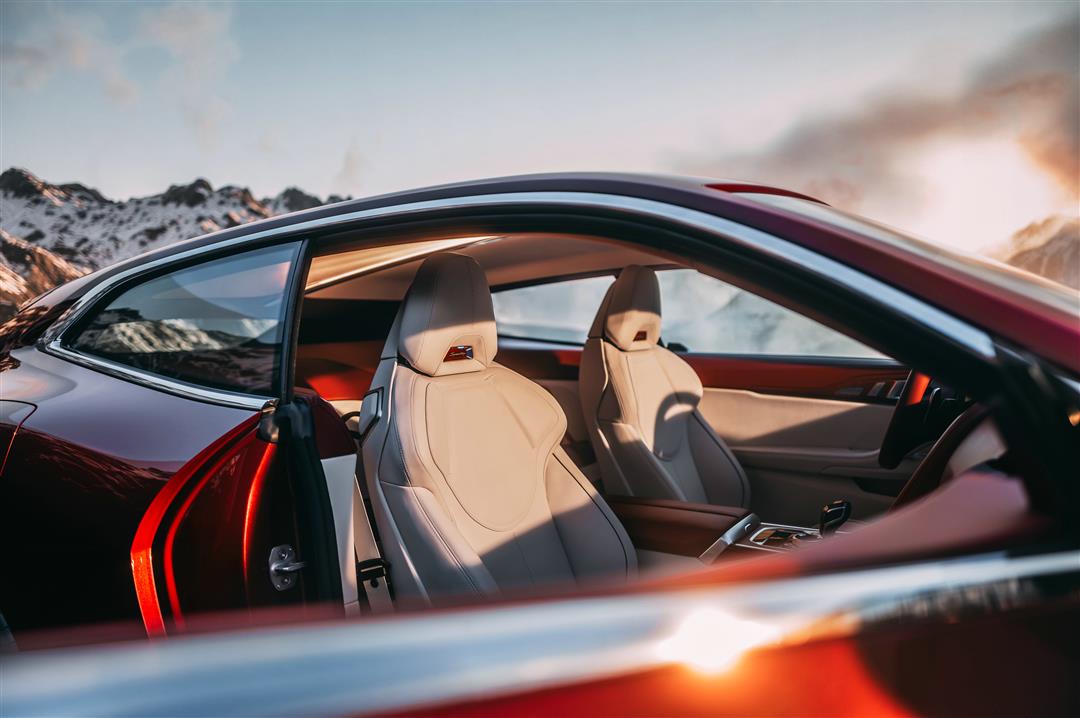 皮革内饰匠心独运的色彩搭配和精心挑选的材质与外观风格相呼应,展现出非凡的设计巧思与美学追求。流光日曜红车漆闪耀的红棕色调延伸至车内,幻化为暮影赤褐,与座椅的月光石白和谐相融。双色皮革内饰巧妙划分了座舱的动态驾驶区与功能区。流畅醒目的车顶线条,在双色皮革车顶内衬中以光带的形式呈现,营造出富有氛围感的照明效果。值得一提的是,宝马此次携手意大利顶奢皮革品牌Schedoni为BMW Speedtop打造了颜色和材质与整车风格完美契合的高级定制随车箱包。Schedoni以手工制作高端皮具闻名,尤其在汽车领域成绩斐然,代表着顶级品质与定制化服务。