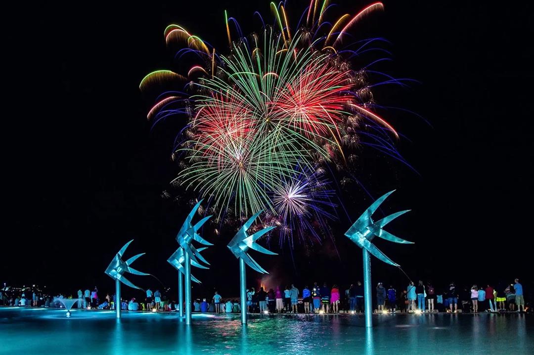 ◆位于凯恩斯市中心的滨海大道(Cairns Esplanade):下午5:00起有免费音乐会和娱乐表演,晚间9点有家庭烟花秀,午夜将举办正式跨年烟花表演