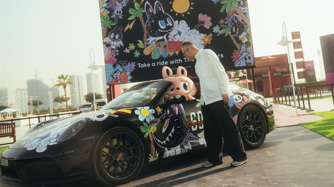 当限量雕像呈现 King Mon 驾乘复古微型 Targa 的生动场景时,真人大小的 Labubu 玩偶已端坐于艺术车——992 代 911 Targa 的驾驶舱。身着定制保时捷 T 恤的 Labubu 成为本届“Icons of Porsche”活动的又一亮点。龙家升更从迪拜举办地汲取灵感,为这台跑车注入 Labubu 风格的专属设计。