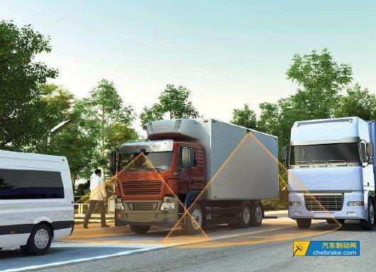 ↑TopView:用于商用车的智能摄像系统可以彻底消除盲区,使驾驶员一眼就能看到车辆及其周围 360 度范围内的情况。