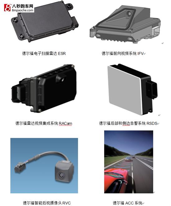 全速范围的自适应巡航系统ACC能够帮助驾驶员自动控制车速,保持和前车设定的车距。该系统不但适用于高速行驶的工况,还能够应用在城市工况,让驾驶员在城市环境车辆不断起停的情况下,轻松自如地操控车辆,大大提高车辆的舒适性和安全性。前向碰撞预警系统FCW能够在车辆有碰撞危险时,通过闪烁的灯光和声音提醒驾驶员采取措施,如果驾驶员没有及时采取避免碰撞的措施,紧急自动刹车和刹车辅助AB/ABA系统会起作用,帮助车辆避免发生碰撞或者减小碰撞所造成的后果。车道偏离告警系统LDW能够自动识别和跟踪道路上的车道线,当驾驶员由于疲劳或注意力不集中无意识偏离车道时,对驾驶员进行告警。德尔福的LDW系统能够自动识别驾驶员主动变换车道的行为,从而大大减小不必要的告警。驾驶员驾驶状态监测系统LKP通过对驾驶员保持直线行驶能力的判断,对驾驶员由于长途驾驶产生疲劳的情况,提醒驾驶员在长途驾驶过程中进行必要的休息。主动夜视系统能够帮助驾驶员在夜间行驶时,通过夜视系统比较清楚地看到车辆前方的目标,特别是行人。