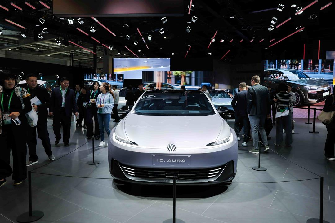 ▲观众在进博会现场参观大众汽车品牌ID. AURA