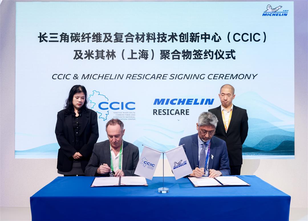 11月8日,米其林(上海)聚合物有限公司【以下简称:米其林(上海)聚合物】与长三角碳纤维及复合材料技术创新中心在第八届中国国际进口博览会(以下简称:进博会)现场正式签署战略合作协议,标志着双方在高性能、可持续复合材料领域的合作迈上新台阶。此次合作将聚焦生物基、无毒、高性能树脂体系的研发与产业化,致力于推动中国复合材料产业的绿色转型与技术升级。