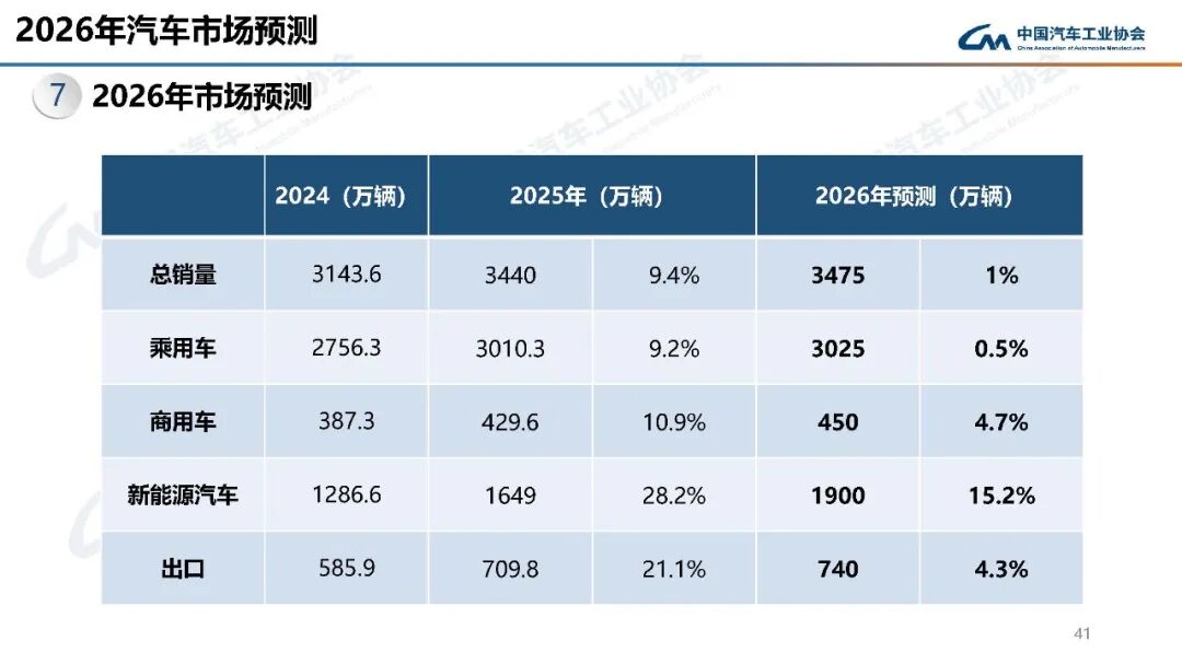 据中国汽车工业协会分析,2025年,汽车产销累计完成3453.1万辆和3440万辆,产销量再创历史新高,连续17年稳居全球第一。其中,乘用车市场稳健增长,作为汽车消费的核心组成部分,有效拉动汽车市场的整体增长;商用车市场回暖向好,产销实现10%以上增长,回归400万辆以上;新动能加快释放,新能源汽车产销超1600万辆,国内新车销量占比超50%,成为我国汽车市场主导力量;对外贸易呈现出较强韧性,汽车出口超700万辆,新能源汽车出口达261.5万辆,出口规模再上新台阶。