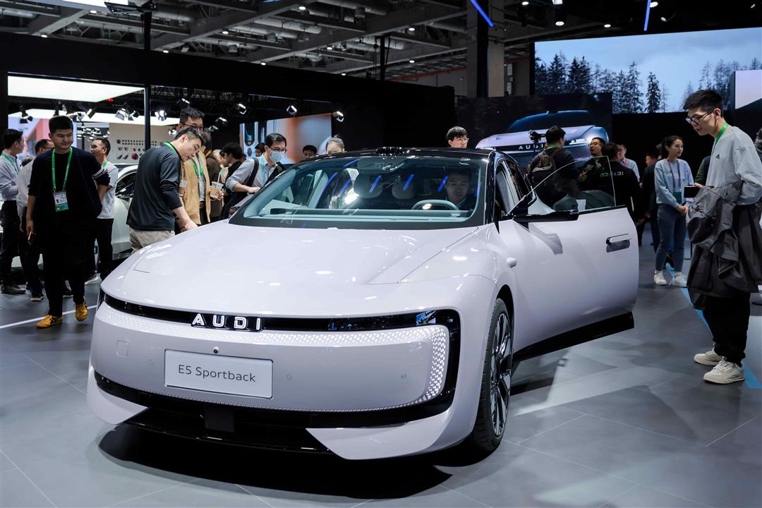 ▲观众在进博会现场参观奥迪 E5 Sportback