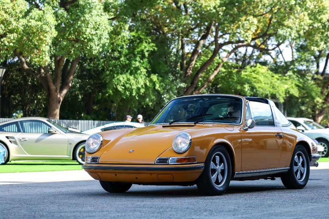 ▲911 S Targa (1969 年)——全球首款搭载固定防滚架的安全敞篷,将防滚架从功能性部件写进设计史;