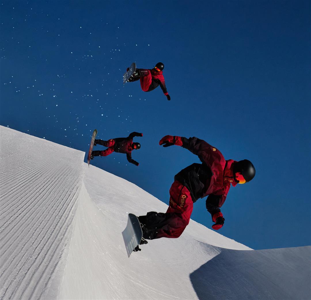 ▲中国国家高山滑雪队、中国国家单板滑雪U型场地队身着由迪桑特量身打造的队服
