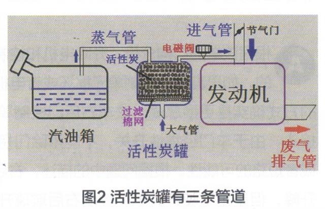 汽油是一种极易挥发的燃料,当车辆行驶时,油箱晃动和回油的加热作用,会加快油箱内汽油挥发成蒸气,增加油箱内内部的压力,当压力升高后会产生一定的危险。为平衡压力,过去往往在油箱盖内设置一个限压阀,能把汽油蒸气泄放到大气中。而汽油蒸气对环境十分有害,从保护环境和节约燃油的角度考虑,从而设置了炭罐来吸收汽油蒸气。炭罐内部填充有吸附性很强的活性炭,燃油蒸气不再排到大气中,而是由管道吸入到活性炭罐中。