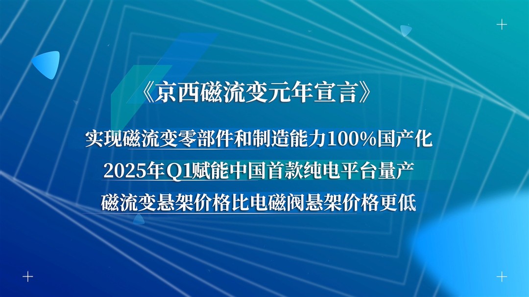 发布会上,京西集团以《磁流变元年宣言》明确了磁流变技术国产化的关键目标:第一,京西集团将全面实现磁流变零部件与制造能力的100%国产化;第二,2025年一季度实现量产,首次赋能中国纯电平台;第三,使磁流变悬架的价格低于电磁阀悬架价格。