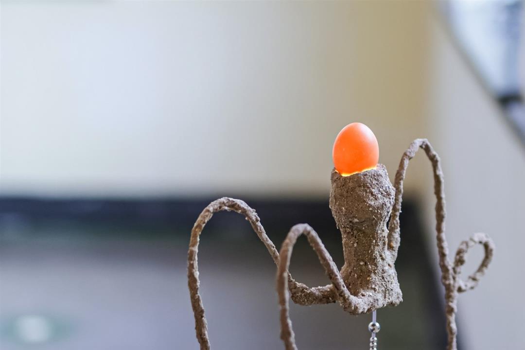 艺术家胡佳艺的作品《冰刀》、《总是来得太迟》以日常为起点,赋予其寓言般的张力,展示一种超越资本逻辑、恢复感知的全新节奏。《虚空的呼唤》系列作品则在时空与物质的循环中,展开对自由意义的深邃追问。艺术家黎佳仪的作品《中场休息》和《蛋》,脱离了人类中心视角,构建出重塑感知的独特叙事,引人驻足凝思。装置艺术家徐戈的《接口》以艺术语言解剖技术理性,真实映照出人被数据异化的生存现实。他的系列作品《永无岛——一块蛋糕计划》以荒诞神话展开,耐心而深入地探讨人类内心世界的虚空和追寻。