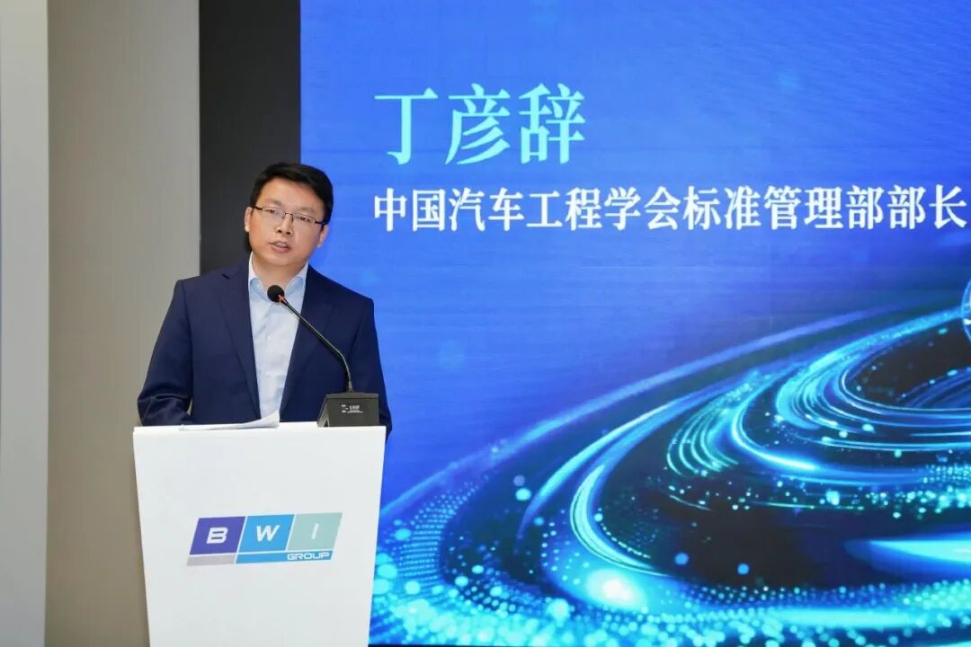 ▲中国汽车工程学会标准管理部部长丁彦辞为标准研讨会致辞